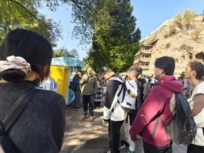 告别国家博物馆后,同学们抵达山西大同的云冈石窟。面对沿崖开凿的壮丽石刻,大家无不惊叹于这一千五百年前的艺术奇观——从早期的气韵雄健,到中期的精丽华美,再到晚期秀骨清象,云冈石窟生动展现了中华文明兼收并蓄、海纳百川的博大胸怀。