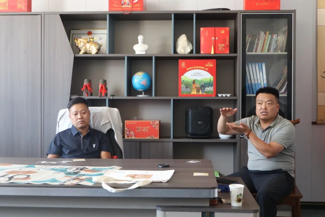来到毛女馍业的办公室中,毛女馍业的负责人团体热情地迎接了团队成员,并与团队成员进行讨论。首先,毛女负责人向我们讲述了石子馍发展的历史,让我们了解到毛女产业发展的基本知识,便于更好地对与毛女石子馍进行宣传。我们也从这场对话中了解到毛女石子馍制作的工艺与技法,对毛女石子馍这一产品产生了更浓厚的兴趣。